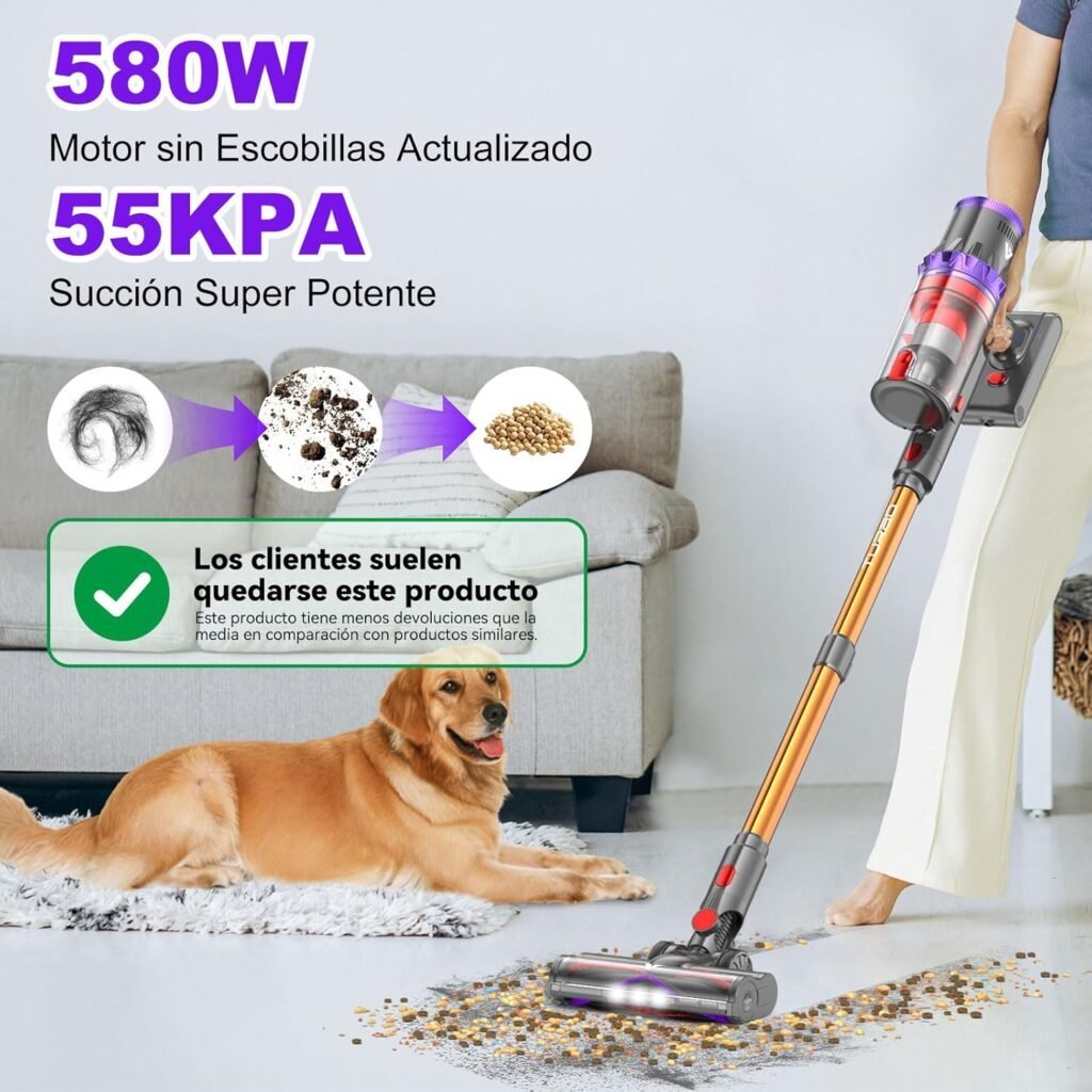 Este aspirador vertical sem fios é ótimo para as tarefas de limpeza diárias, especialmente em casas com animais de estimação, graças aos seus acessórios específicos para animais e à sua potente sucção. É compacto e eficiente, oferecendo praticidade e flexibilidade para uma limpeza regular sem o incómodo do cabelo.