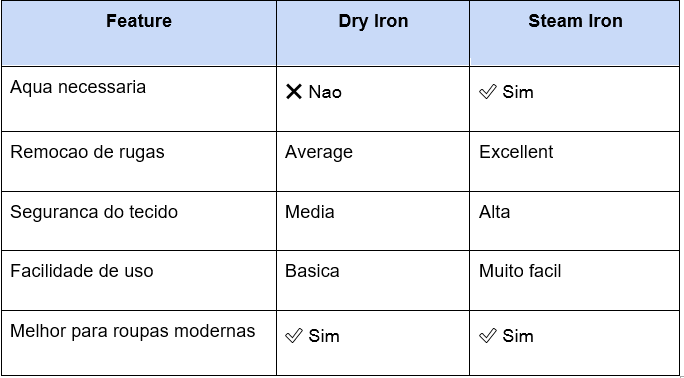 Ferro Seco vs Ferro a Vapor (Comparação Rápida)